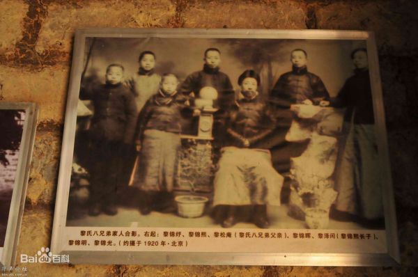 “黎氏八駿”指黎錦熙、黎錦暉、黎錦曜、黎錦紓、黎錦炯、黎錦明、黎錦光、黎錦揚。湖南省湘潭縣中路鋪鎮(zhèn)南岳衡山支脈曉霞山石潭壩鄉(xiāng)菱角村長塘組,這是一個不到10戶人居住的小村落。19世紀末20世紀初,這里曾誕生了為我國文化、科學(xué)事業(yè)作出過重要貢獻的黎氏八兄弟,人稱“黎氏八駿”。(一代國畫宗師齊白石,則誕生于曉霞山東麓之星斗塘。)