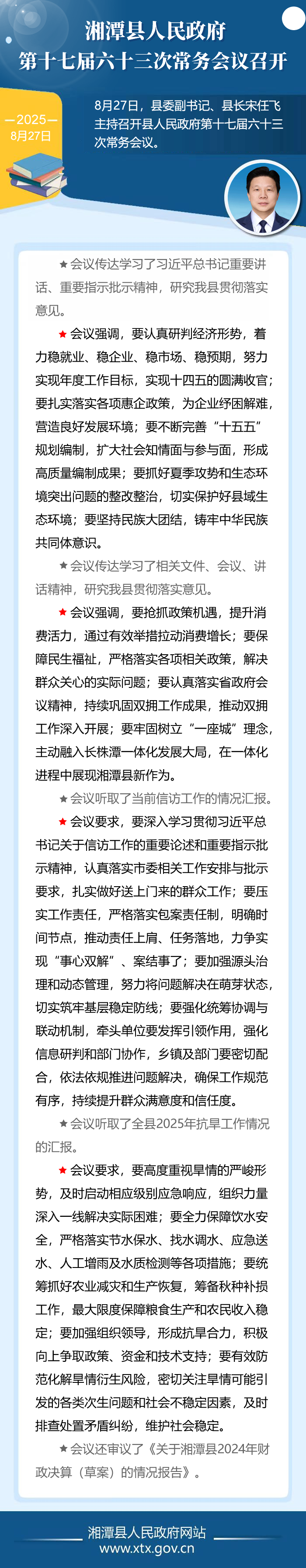 湘潭縣人民政府第十七屆六十三次常務會議召開