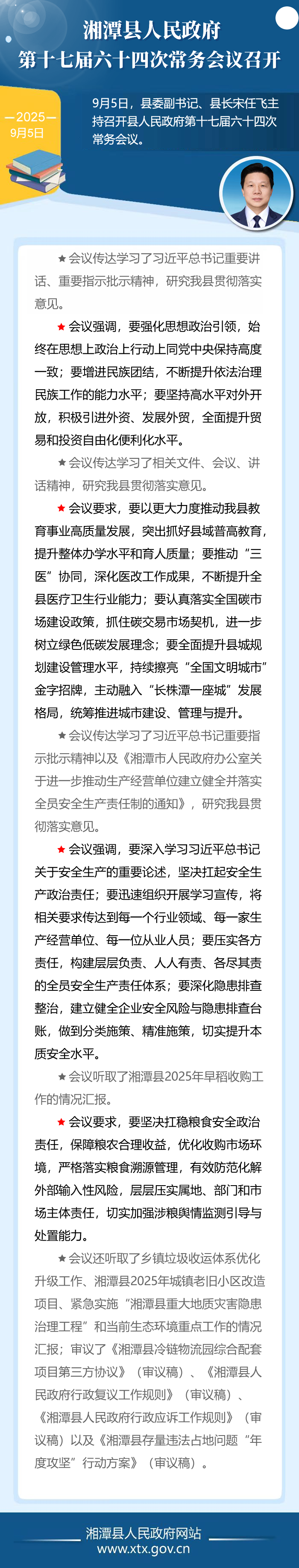 湘潭縣人民政府第十七屆六十四次常務會議召開