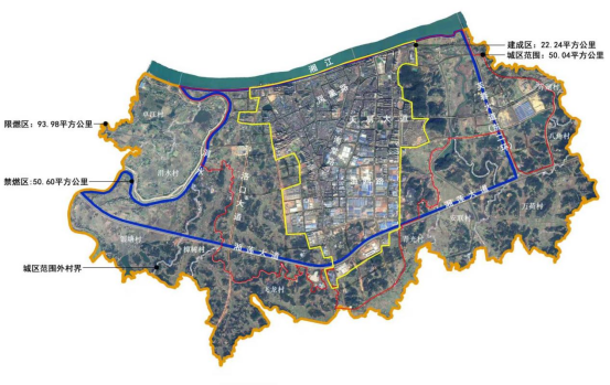注:藍線范圍內為湘潭縣煙花爆竹禁燃區、藍線與橙線之間范圍為限燃區