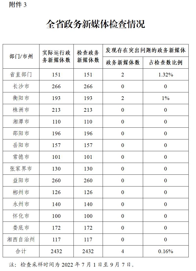 湖南省政務(wù)管理服務(wù)局關(guān)于2022年第三季度全省政府網(wǎng)站與政務(wù)新媒體檢查情況的通報(bào)