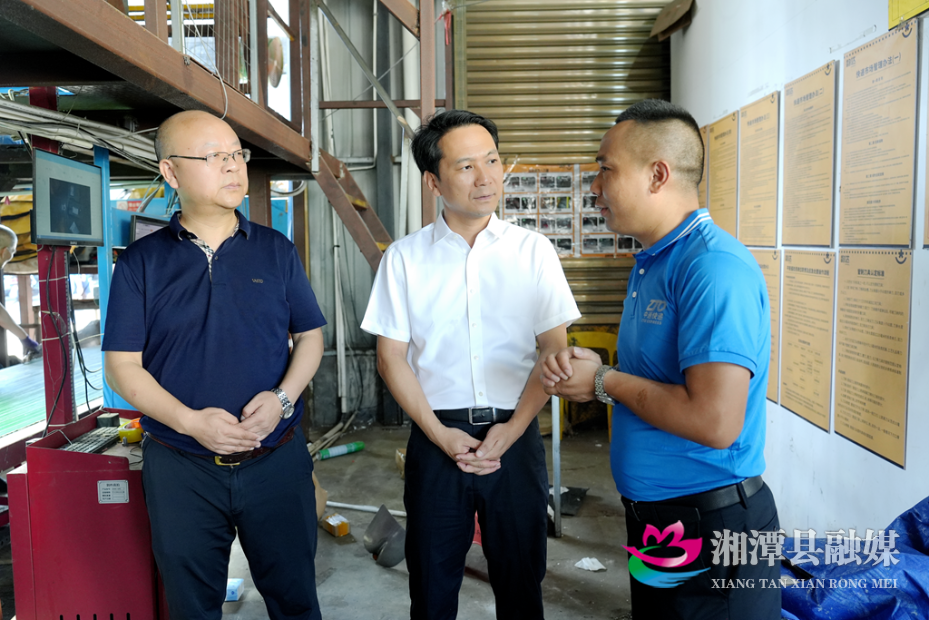 王利(左)在湘潭新大粉末冶金技術有限公司走訪慰問