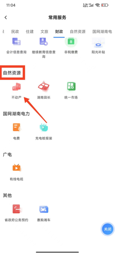 4、下滑進入“自然資源”欄目,點擊進入“不動產”。