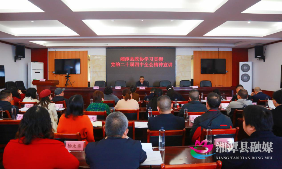 湘潭縣融媒體中心3月6日訊(記者 黃成 何佳達)3月6日,縣政協黨組書記、主席譚捍衛就黨的二十屆四中全會精神開展專題宣講,為政協系統干部職工、政協委員深入解讀全會精神,凝聚思想共識,明晰履職方向。