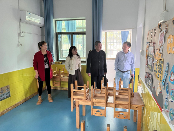檢查組在白石鎮中心幼兒園實地查看室內外環境