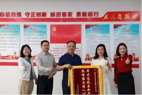 。▓D為:湖南傲派自動化設備有限公司工作人員送錦旗)