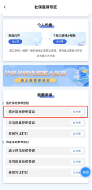 溫馨提醒:如沒有參保城鄉居民醫保,需先找到“我要參保”模塊,在醫療保險參保登記分類下進入城鄉居民參保登記服務,完成參保才能繳費。