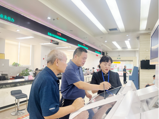 在現場,縣人社局局長以普通辦事群眾身份,全程體驗“高效辦成一件事”服務流程,親身感受人社窗口服務效能。沉浸式體驗了通過人社一體化自助服務機查詢個人養老保險參保情況、打印參保查詢單等事項的操作流程,感受自助服務高效便捷。同時,深入工傷認定業務窗口,體驗了申請認定工傷的各項流程,與窗口工作人員、辦事群眾面對面交流,了解人社服務過程中存在的問題,并針對發現問題提出優化指導。