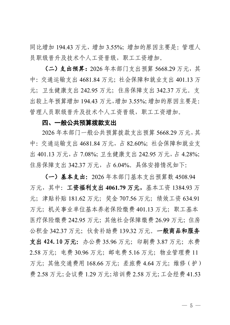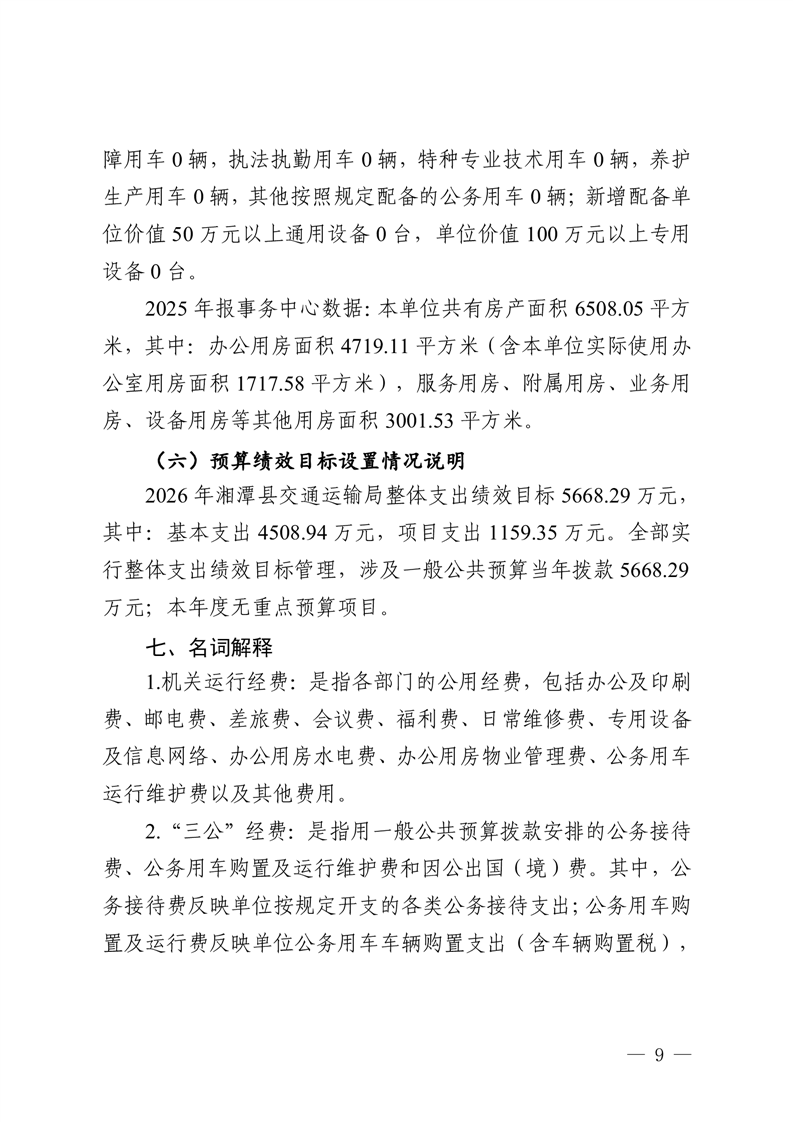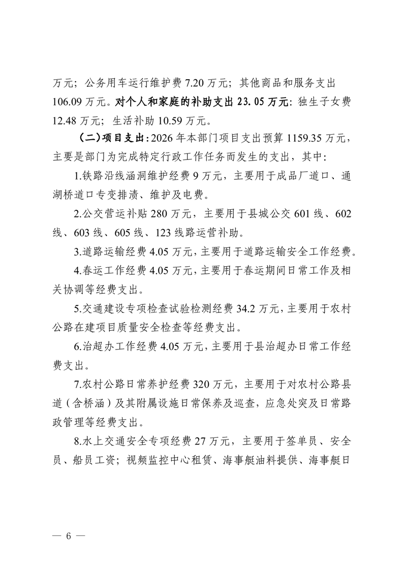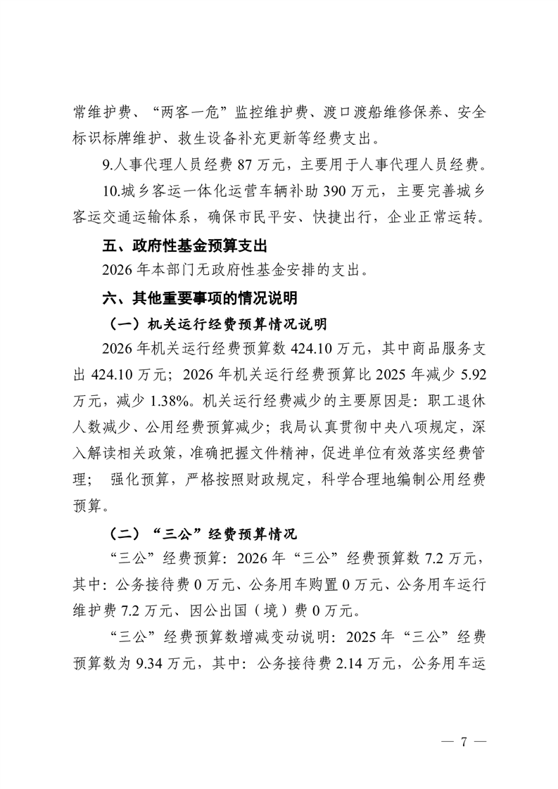 湘潭縣交通運輸局2026年部門預算和三公經費預算公開說明