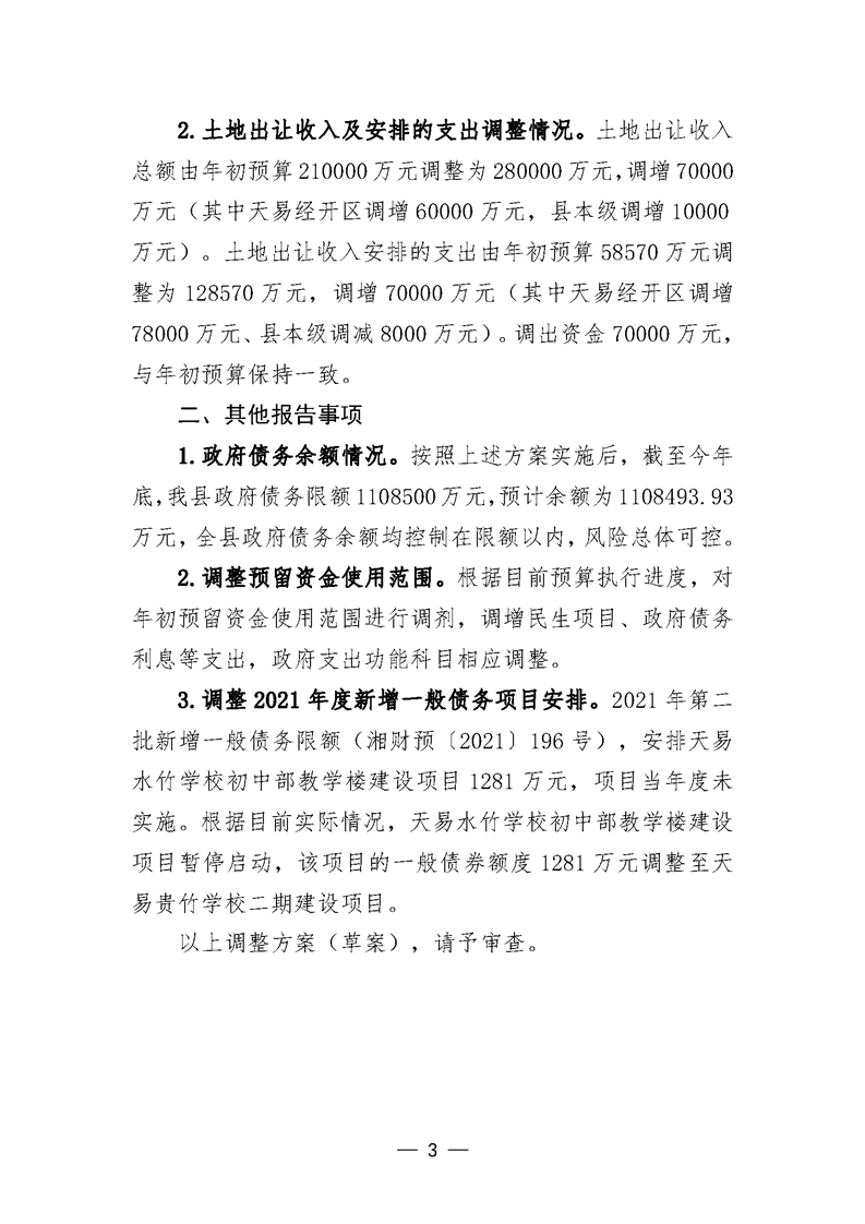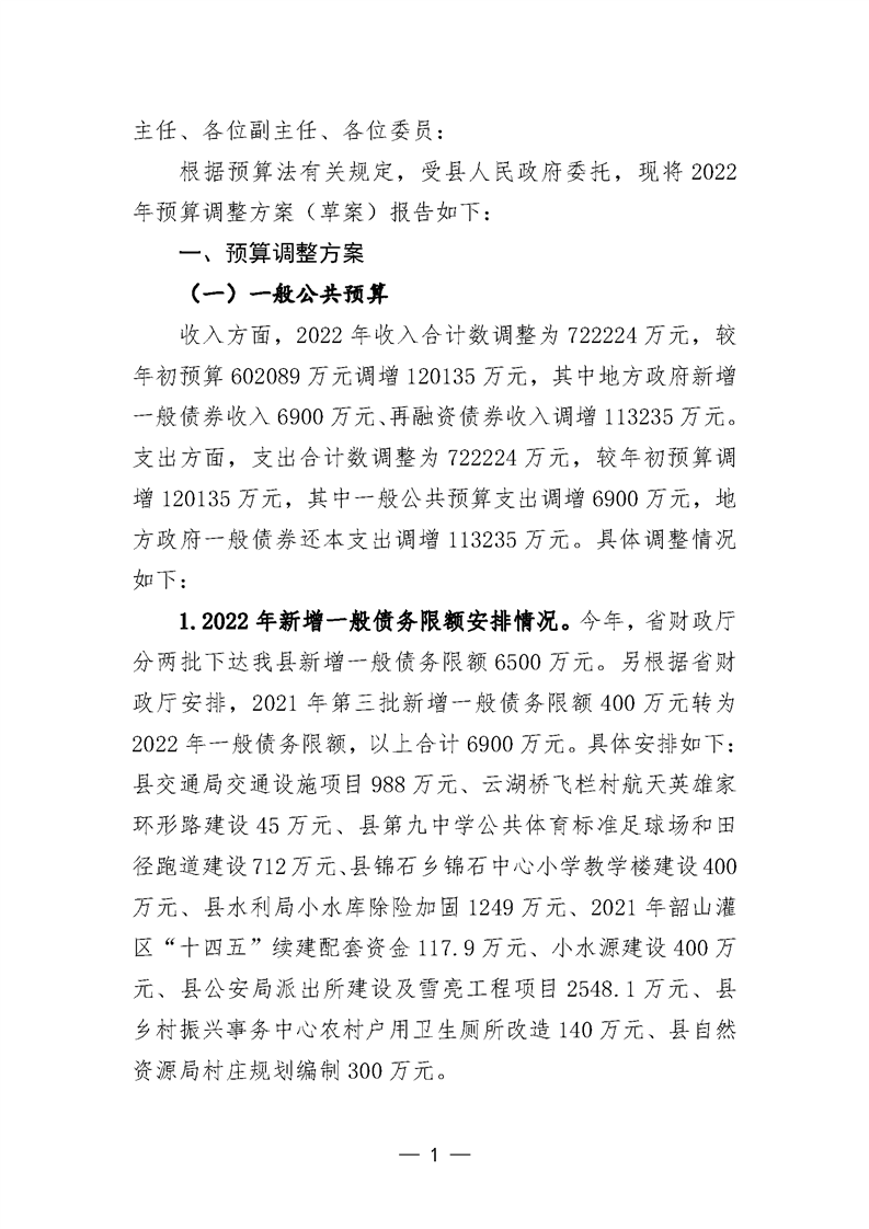 關于湘潭縣2022年縣級預算調整方案(草案)的報告