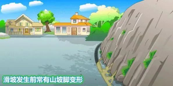 崩塌發(fā)生前常有山體掉落土石、小崩小塌現(xiàn)象;滑坡發(fā)生前常有山體開裂現(xiàn)象;滑坡發(fā)生前常有掉土落石、流黃水、坡腳變形現(xiàn)象;泥石流發(fā)生前常伴有山溝內(nèi)流水阻斷異常及轟鳴聲。
