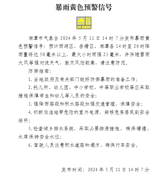 暴雨黃色預警信號!!!