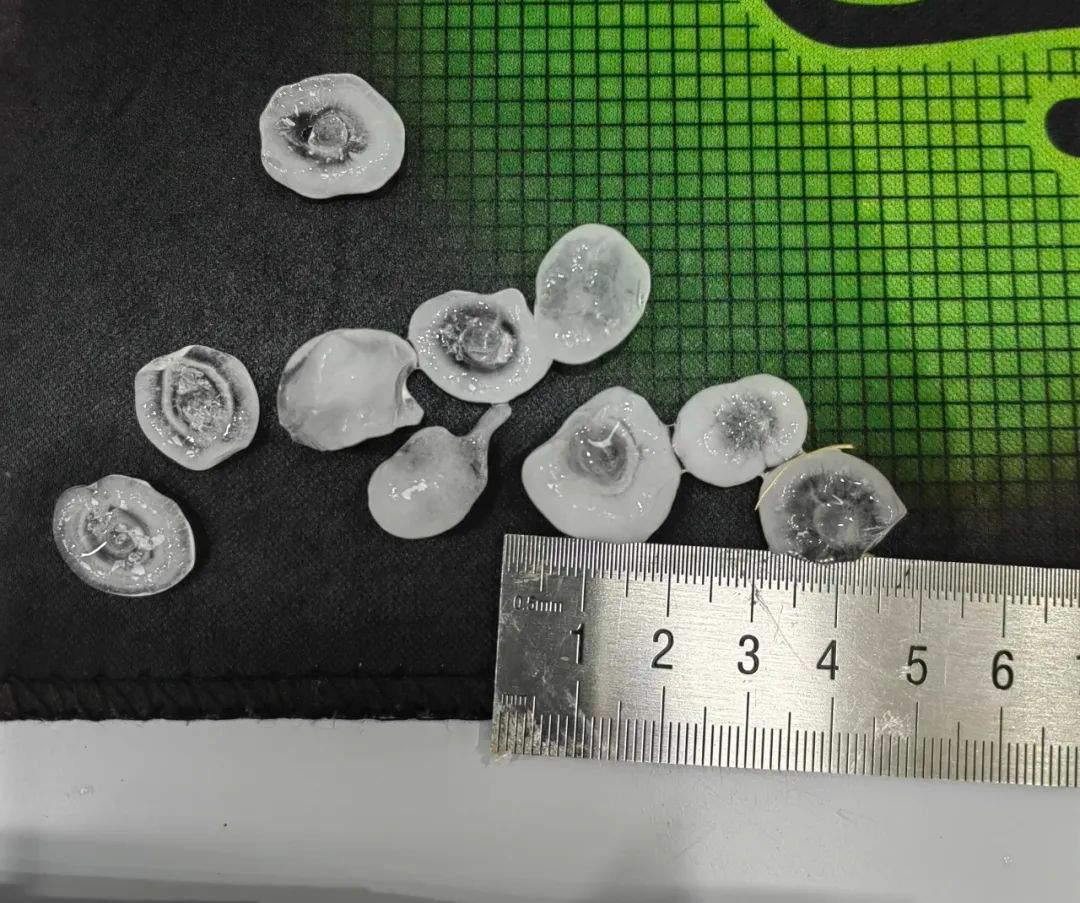 湘西自治州鳳凰縣臘爾山、禾庫、兩林等鄉鎮出現冰雹,據氣象信息員測量,冰雹最大直徑5-6厘米!
