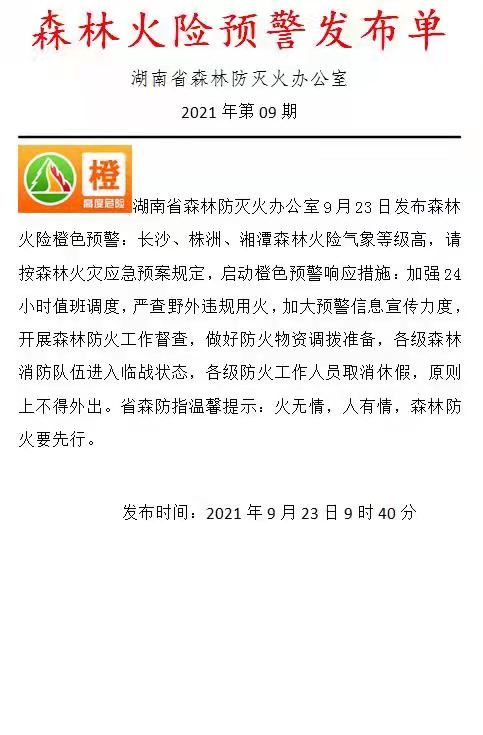 森林火險預警發(fā)布單