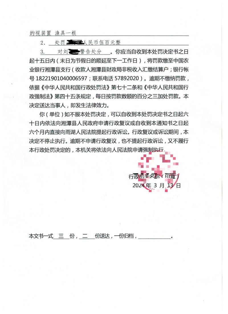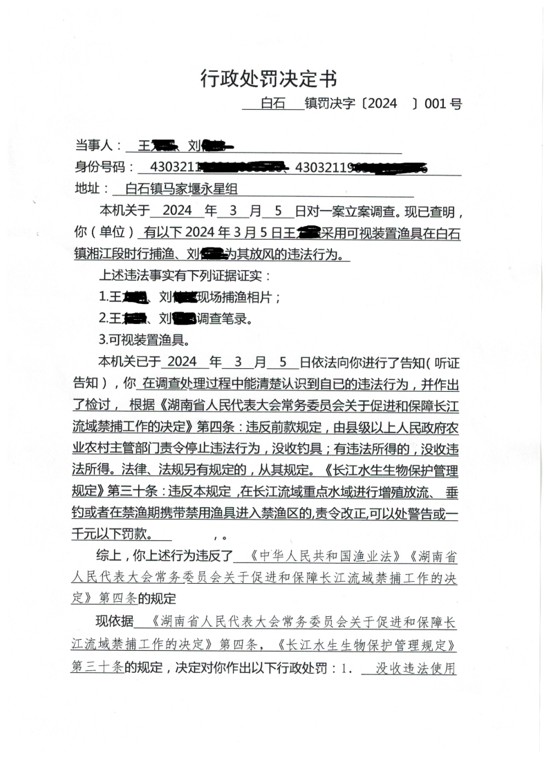 湘潭縣白石鎮綜合行政執法大隊行政處罰決定書