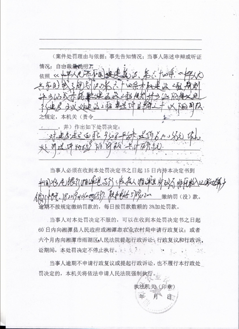 湘潭縣白石鎮(zhèn)綜合行政執(zhí)法大隊行政處罰決定書(002號)