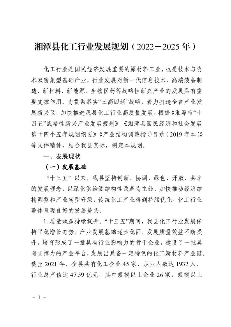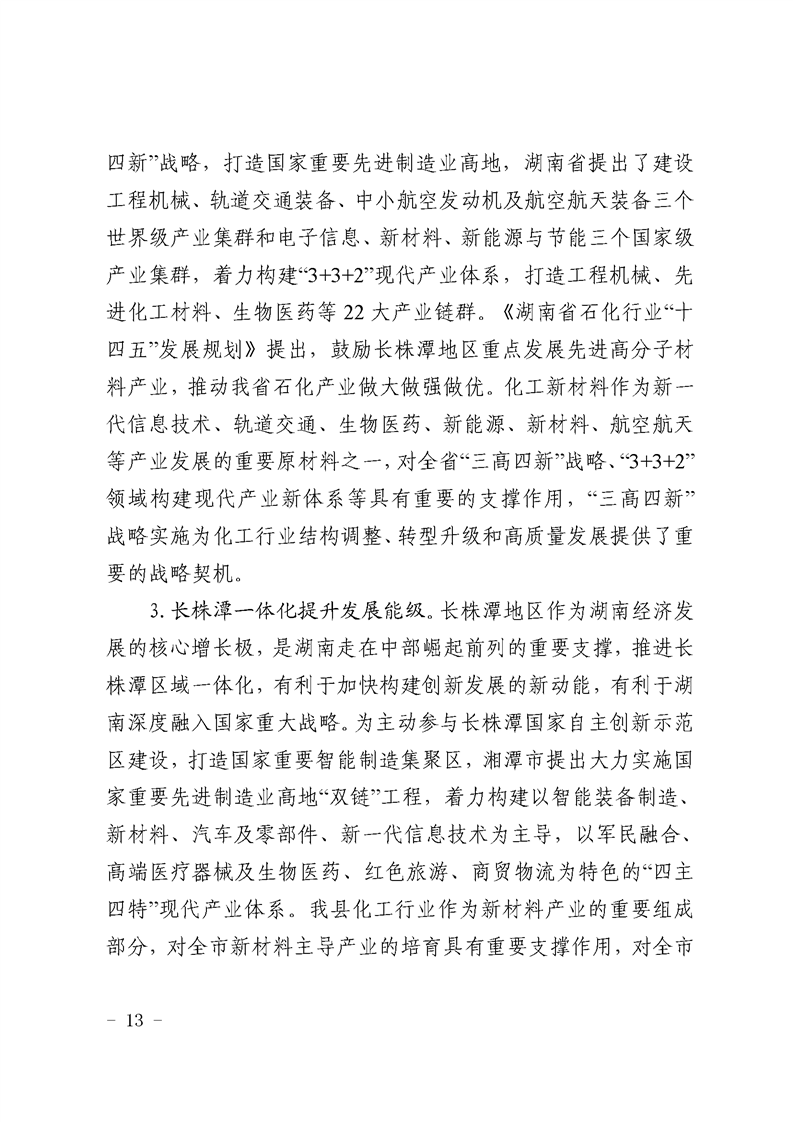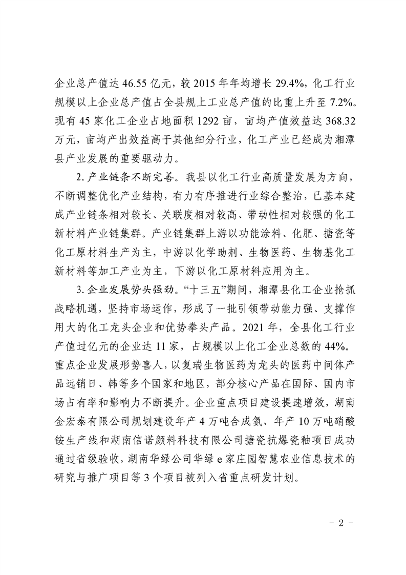 湘潭縣化工行業發展規劃(2022-2025年)