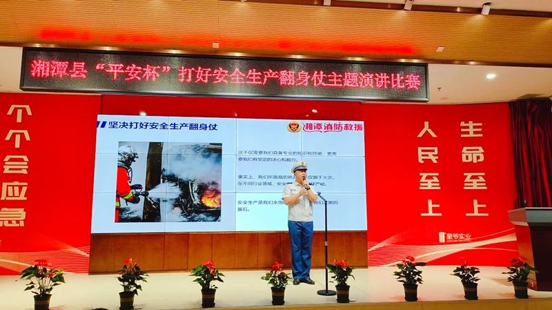演講比賽現場,13位參賽選手結合工作、生活實際以及身邊典型事例,以飽滿的熱情、真摯的語言暢談了對安全生產的認識和體會,讓在場的聽眾受到了一次深刻的安全教育。經過3個多小時的激烈角逐,湖南皇爺實業有限公司羅琪榮獲第一名,湘潭縣消防大隊袁杰、河口鎮政府張婧茜榮獲第二名。活動現場,企業代表還集體作了安全生產承諾。