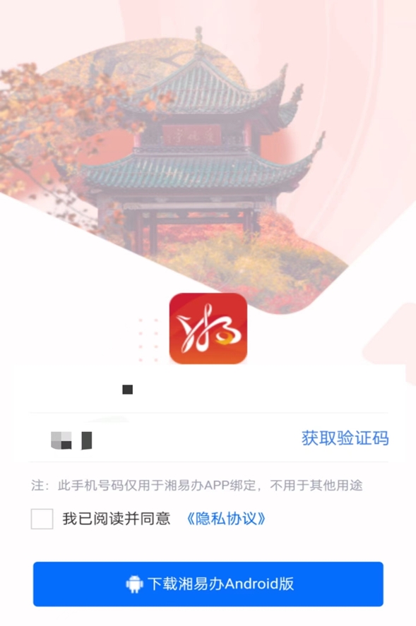 第4步:填入手機(jī)號(hào)碼,填寫好驗(yàn)證碼之后,點(diǎn)下載“湘易辦”APP。