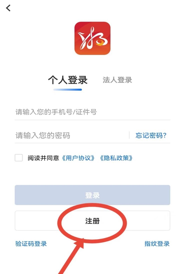 第8步:在“個(gè)人登錄”界面下,點(diǎn)擊“注冊(cè)”。