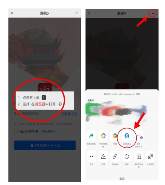 第1步:使用微信掃描識(shí)別“湘易辦”推廣二維碼,進(jìn)入APP安裝指引界面。