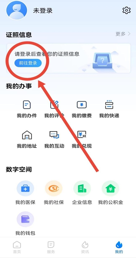 第7步:進(jìn)入“我的”頁(yè)面后,選擇“前往登錄”。