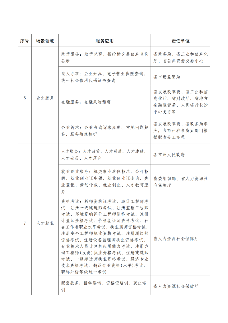 (三)豐富“一件事一次辦”服務內容。6月底前,推進實現婚育、特殊群體、社保保險等“一件事”上線;7月底前,推進實現“身后”、退休、軍人退役等“一件事”上線;8月底前,推進實現企業用工、員工保障、部分辦證類事項等“一件事”上線。9月底前,開展對“一件事一次辦”服務專區已上線事項全面測試完善;實現“跨省APP聯盟”服務事項達200項。(責任單位:省民政廳、省人力資源社會保障廳、省退役軍人事務廳、省政務局、省政務服務和大數據中心、“湘易辦”建設運營機構)