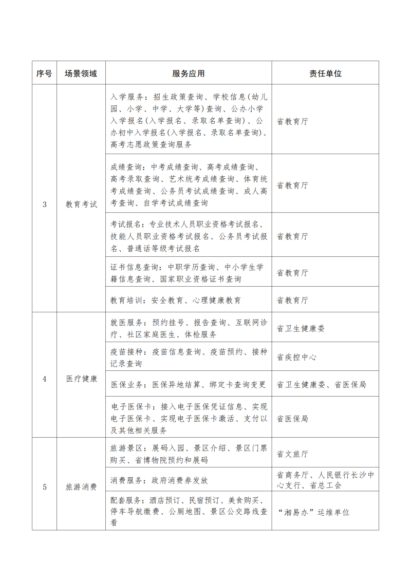 。ǘ┙ê闷炫灥旰吞厣珜^。在持續豐富第一批18個省直部門、14個市州及湘江新區旗艦店服務內容,建設第二批省直部門旗艦店或部門綜合專區的基礎上,針對群眾高頻需求推進特色專區的集成化、服務化、智能化,重點推進智慧文旅、智慧教育、智慧人社、陽光補貼等專區建設和完善。智慧文旅專區:6月底前,完成“湘易辦”與省博物院門票預約系統對接,上線省博物院預約參觀和展碼入館功能。7月15日前,優化橘子洲、岳麓山等熱門景區預約功能,進一步提升游客使用“湘易辦”體驗感。智慧教育專區:6月底前,以服務湖南2023年高考考生和家長為導向,聯合省教育廳在“湘易辦”開設“湖南高考”服務,接入高考成績查詢、錄取情況查詢、高考政策咨詢等一站式服務功能。爭取7月底前完成學平險線上繳費功能。持續優化“學生服務”相關功能,逐步實現學生入學、繳費、學生保險、安全教育、心理健康教育等與學生密切相關的事項一站式全鏈條服務。智慧人社專區:7月底前,完成與“智慧人社”系統對接,在“湘易辦”接入養老保險待遇領取人員資格認證功能,最大程度方便退休人員群體。9月底前,在“湘易辦”接入機關事業單位招錄、公開招聘、人才引進、資格考試等功能,豐富服務內容,優化服務體驗。陽光補貼專區:6月底前,完成“湘易辦”與省財政廳惠民惠農“一卡通”發放系統數據對接,實現全省個人補貼通過“湘易辦”辦理補貼查詢、身份認證,9月底前,全面啟動“湘易辦”與省財政廳陽光補貼發放平臺系統對接,逐步實現全省個人補貼事項在線申報、審批管理和資金發放。(責任單位:省文化和旅游廳、省教育廳、省人力資源社會保障廳、省財政廳、省政務局、省政務服務和大數據中心、“湘易辦”建設運營機構)