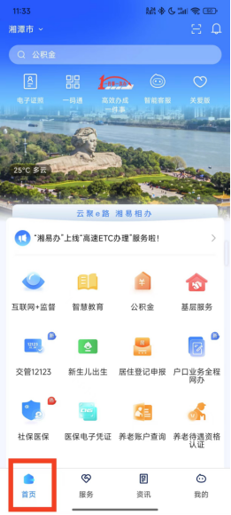 1、打開湘易辦,注冊登錄后進入“首頁”。