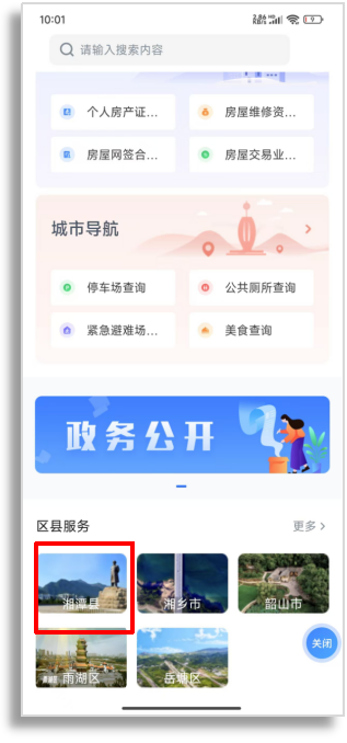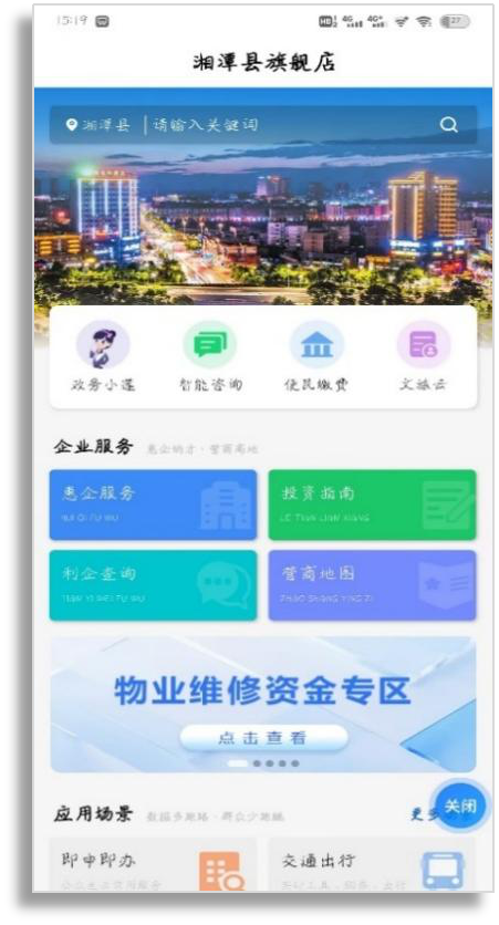 (4)在“湘潭市旗艦店”下滑,在區縣服務中找到“湘潭縣”點擊并進入,在輪播圖中選擇進入“物業維修資金專區”。