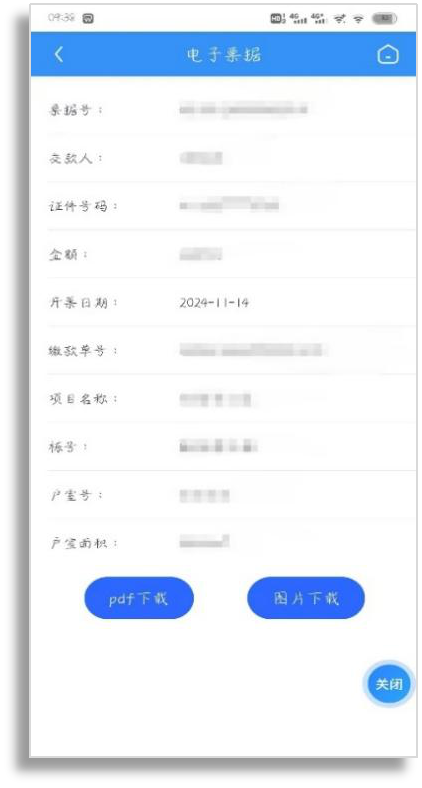 (5)選擇“電子票據下載”,進入后自動根據實名認證的身份證信息獲取電子票據,點擊pdf下載或者圖片下載,即可下載電子票據。