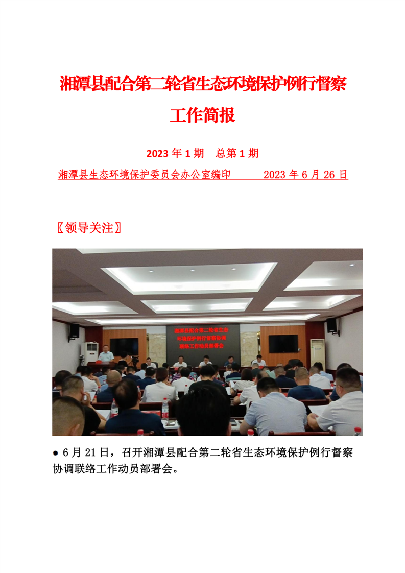 湘潭縣配合第二輪省生態環境保護例行督察工作簡報(第1期)