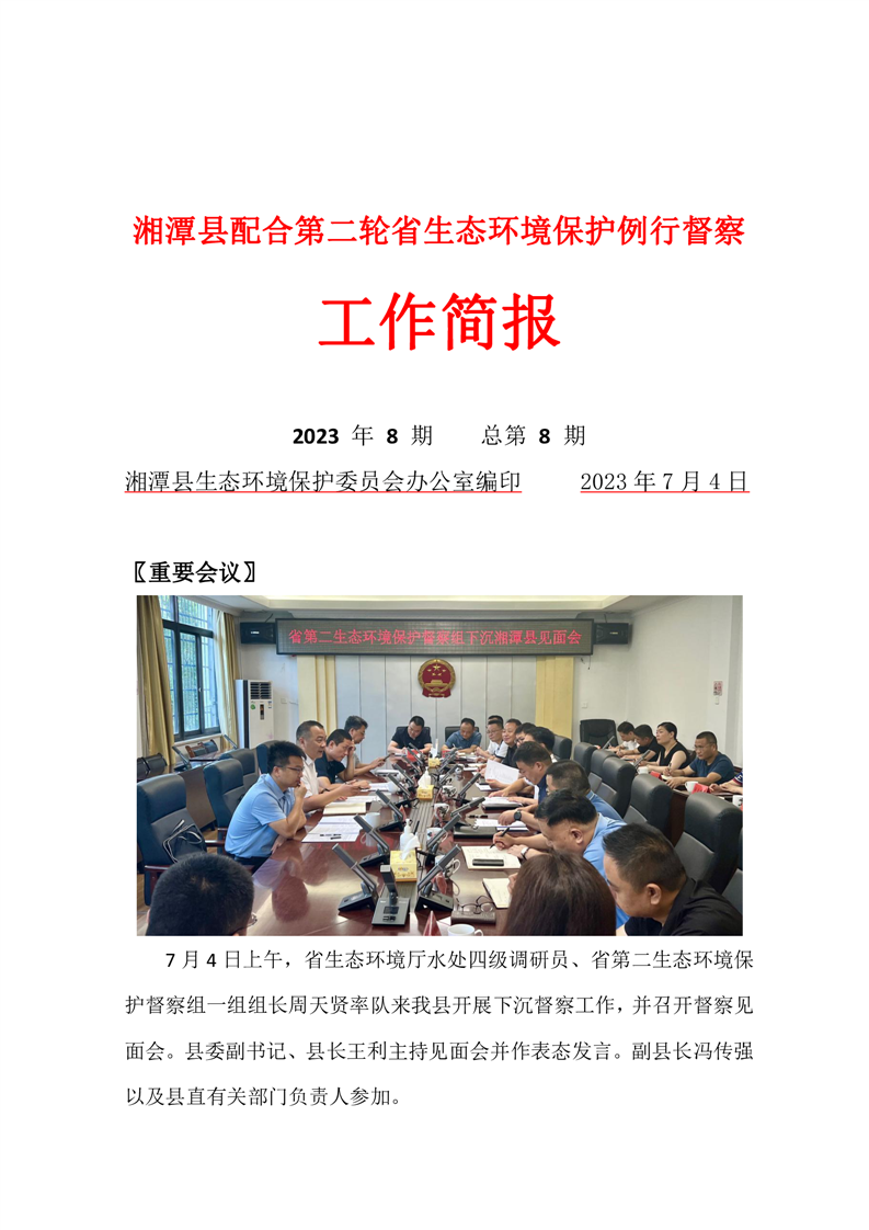 湘潭縣配合第二輪省生態環境保護例行督察工作簡報(第8期)