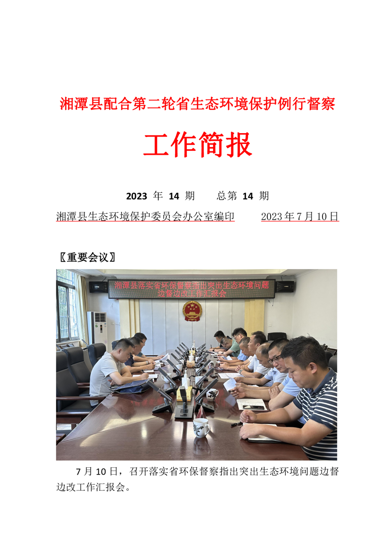 湘潭縣配合第二輪省生態環境保護例行督察工作簡報(第14期)