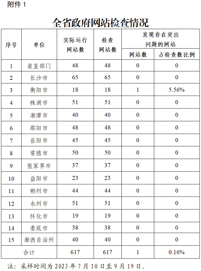 湖南省政務(wù)管理服務(wù)局關(guān)于2023年第三季度全省政府網(wǎng)站與政務(wù)新媒體檢查情況的通報(bào)