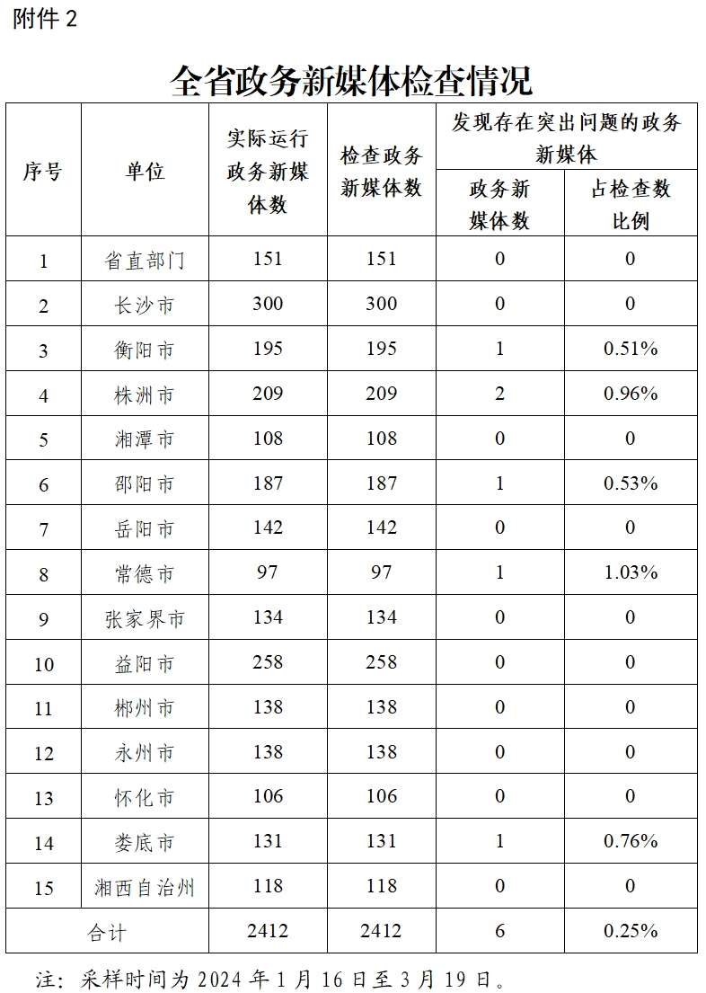 湖南省數(shù)據(jù)局關于2024年第一季度全省政府網站與政務新媒體檢查情況的通報