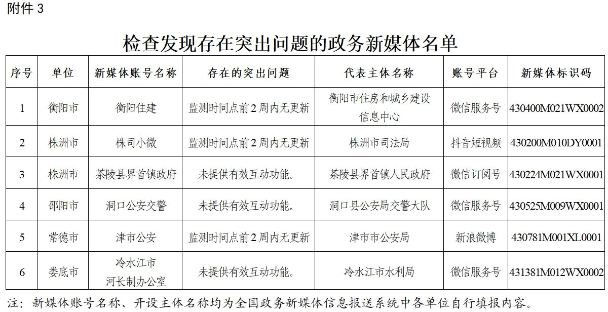 3.檢查發(fā)現(xiàn)存在突出問題的政務新媒體名單