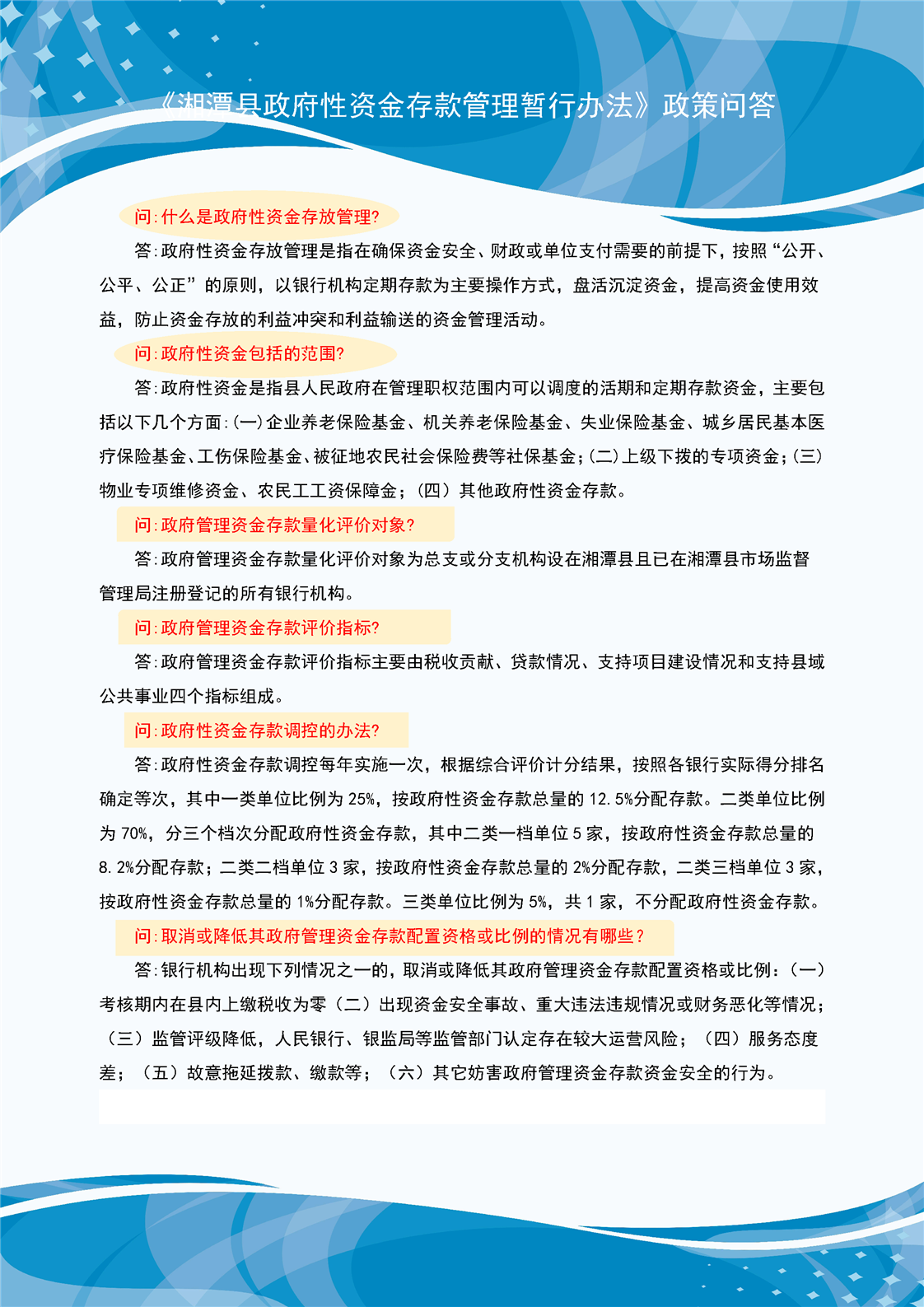 《湘潭縣政府性資金存款管理暫行辦法》政策圖解