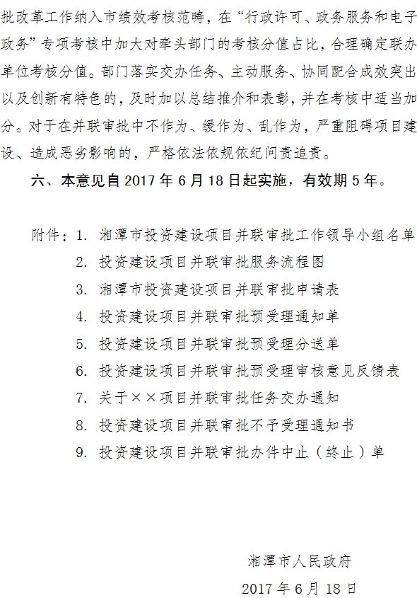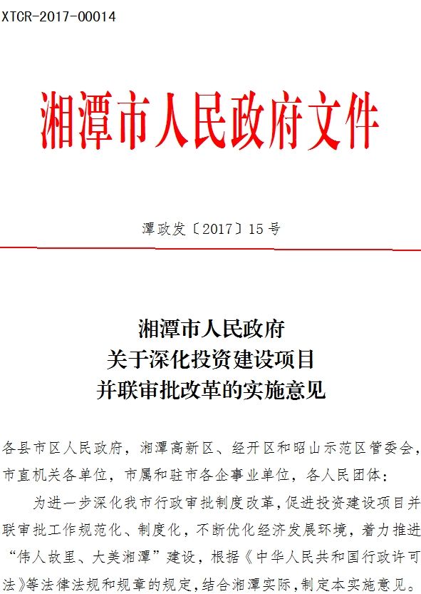 湘潭市人民政府關于深化投資建設項目并聯審批改革的實施意見
