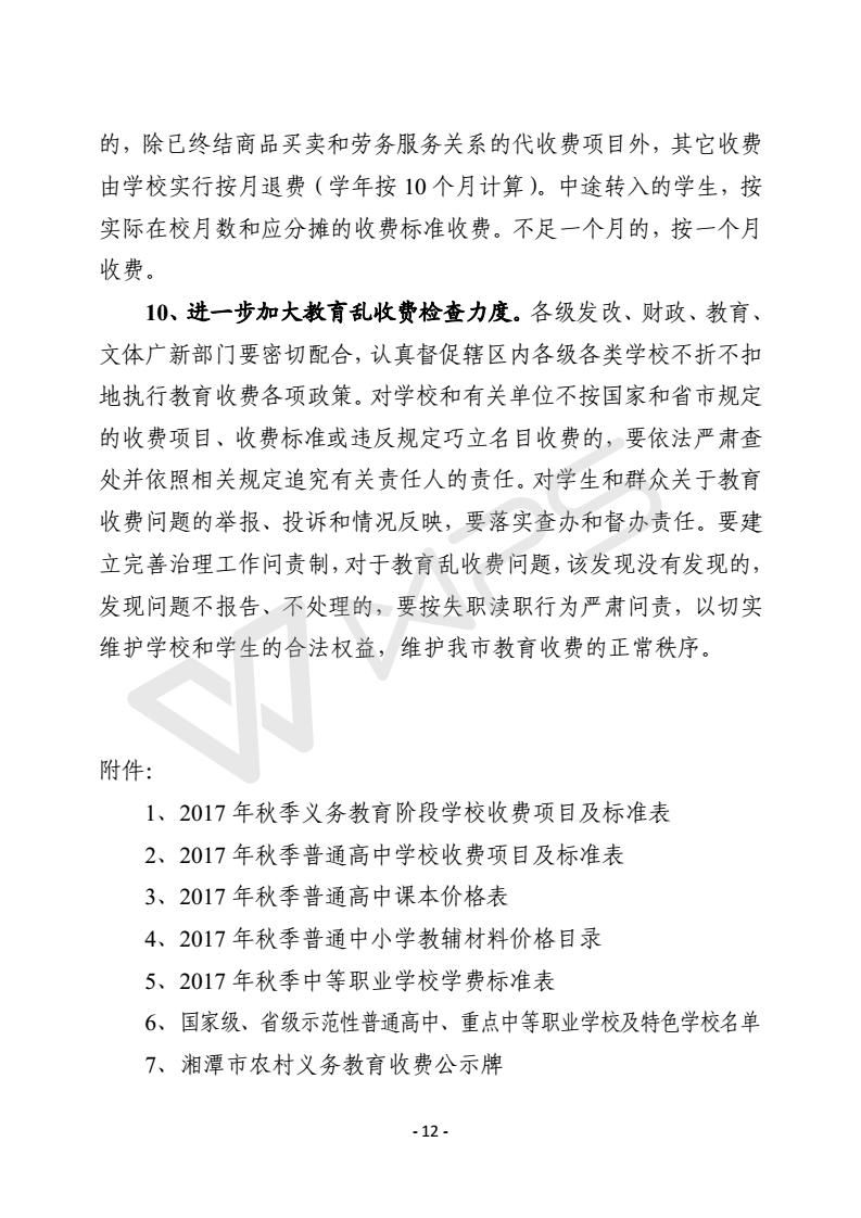 湘潭市發改委 湘潭市財政局 湘潭市教育局 湘潭市文體廣新局關于2017年秋季全市中小學收費管理有關事項的通知