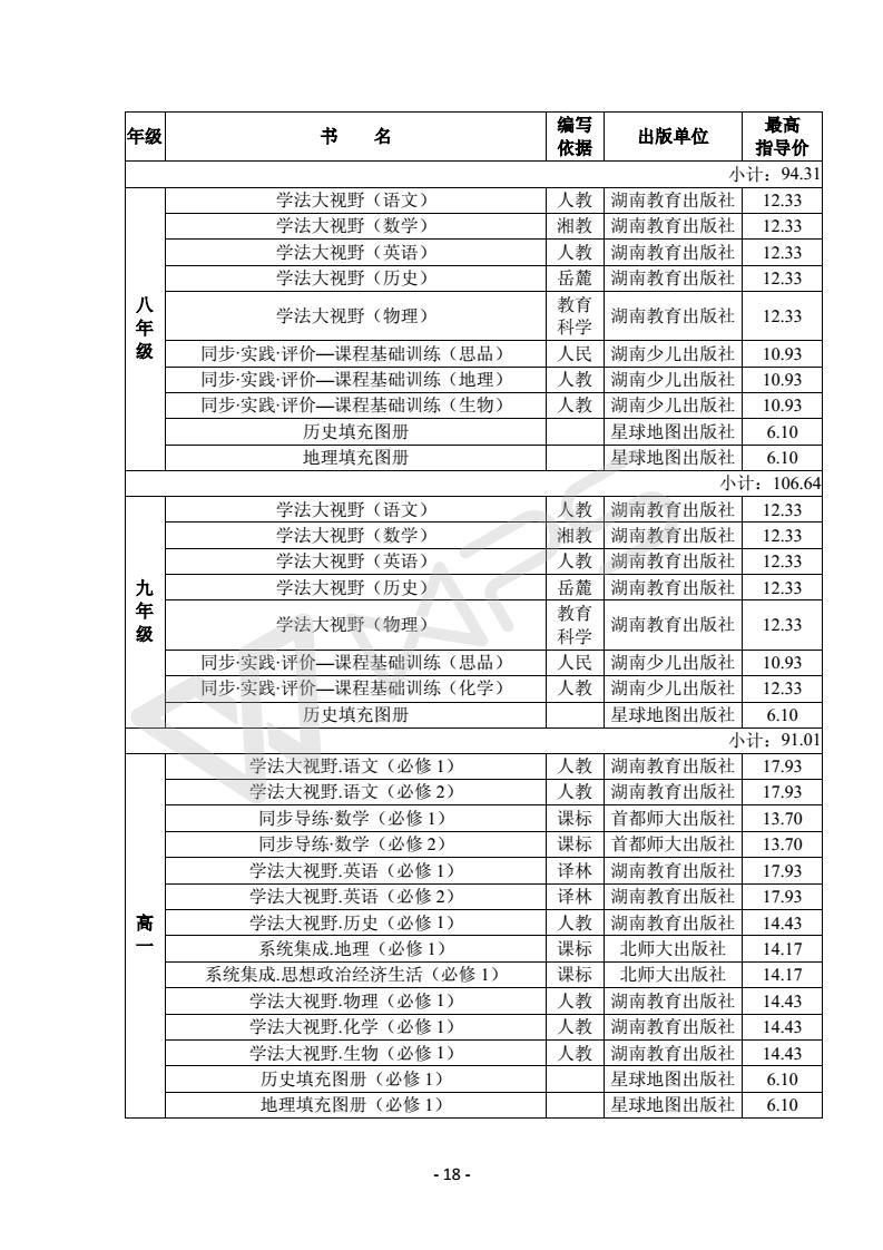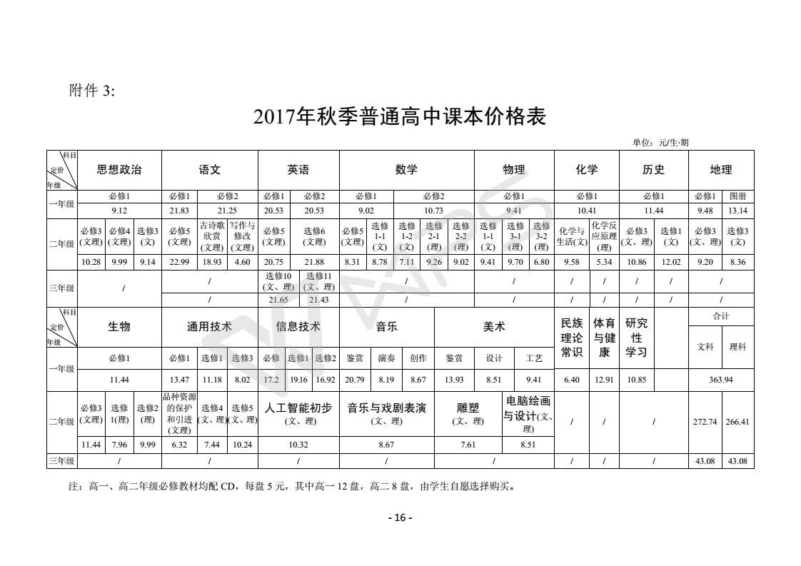 一圖讀懂:湘潭2017年秋季中小學生收費標準