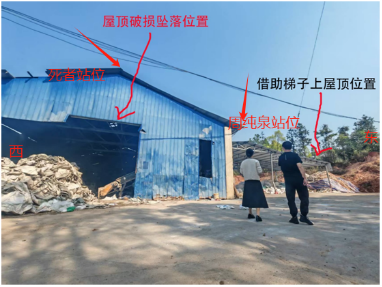 2025年3月16日13時許,陳紅某從鑫旺公司帶袁孝某及其工友周純某到創新公司廠房內丈量屋頂修繕面積。13時30分許到達事故現場位置,陳紅某口頭提醒上去不安全,要求兩人在下面測量,袁孝某和周純某要求上屋頂測量尺寸,并在廠內找來梯子。袁孝某站在屋頂中間位置,周純某站在屋頂下沿位置。13時50分許,兩人測量廠房東邊面積后,準備測量西邊面積,袁孝某踩的石棉瓦破損并從屋頂墜落至廠房內地面。