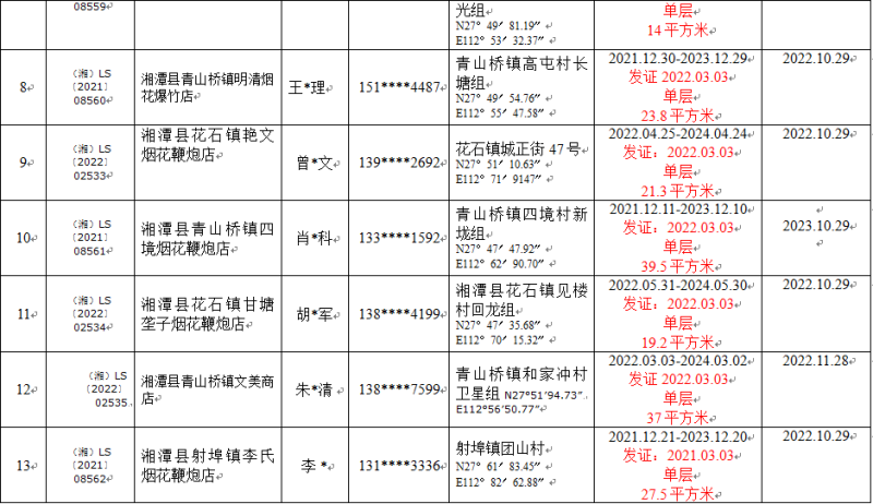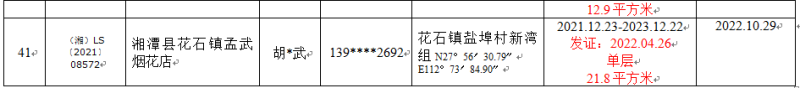 索引號:4303000006/2022-1023347 發布機構:行政執法信息公示 發布目錄:行政審批