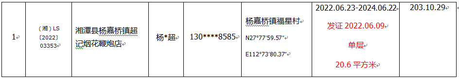 2022年6月9日煙花爆竹行政許可政務(wù)公開(kāi)
