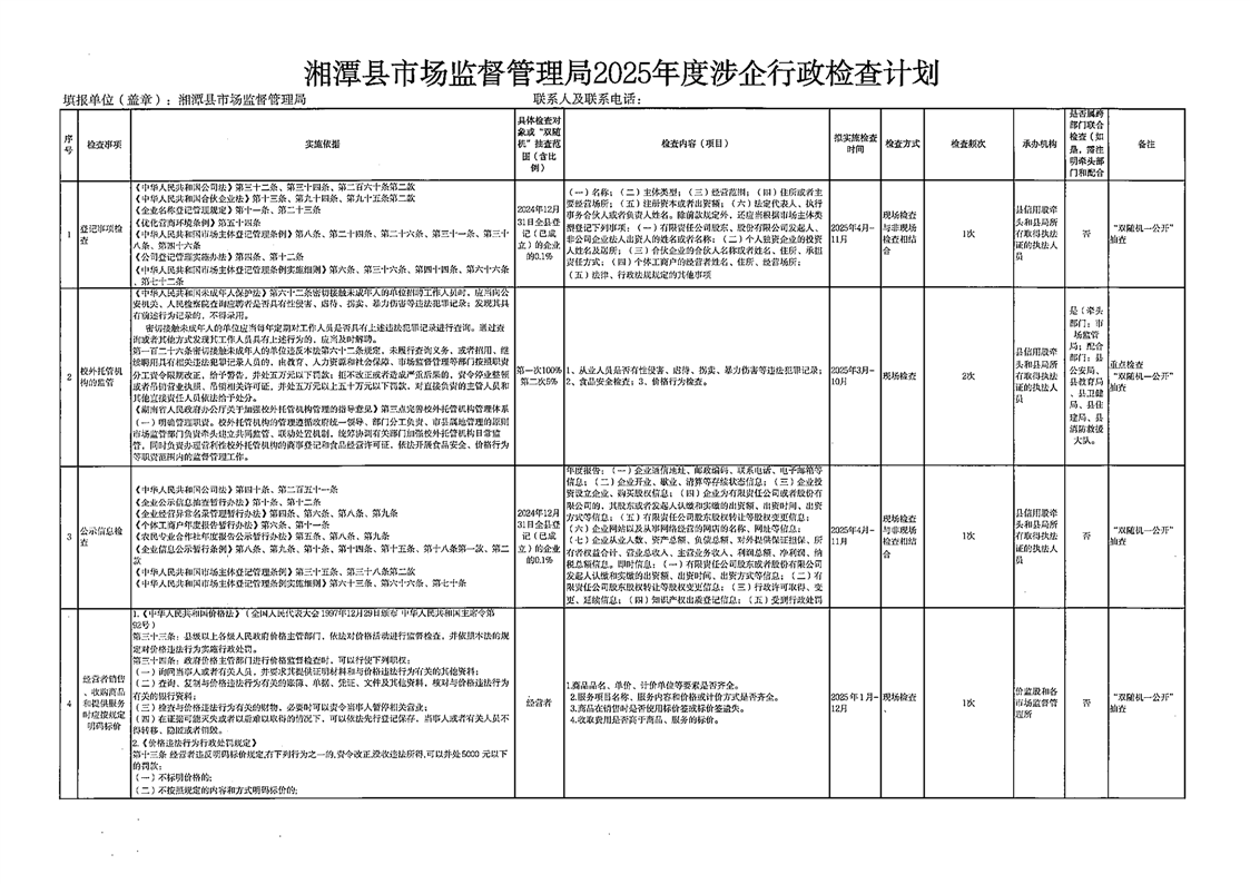 湘潭縣市場監督管理局2025年度涉企行政檢查計劃