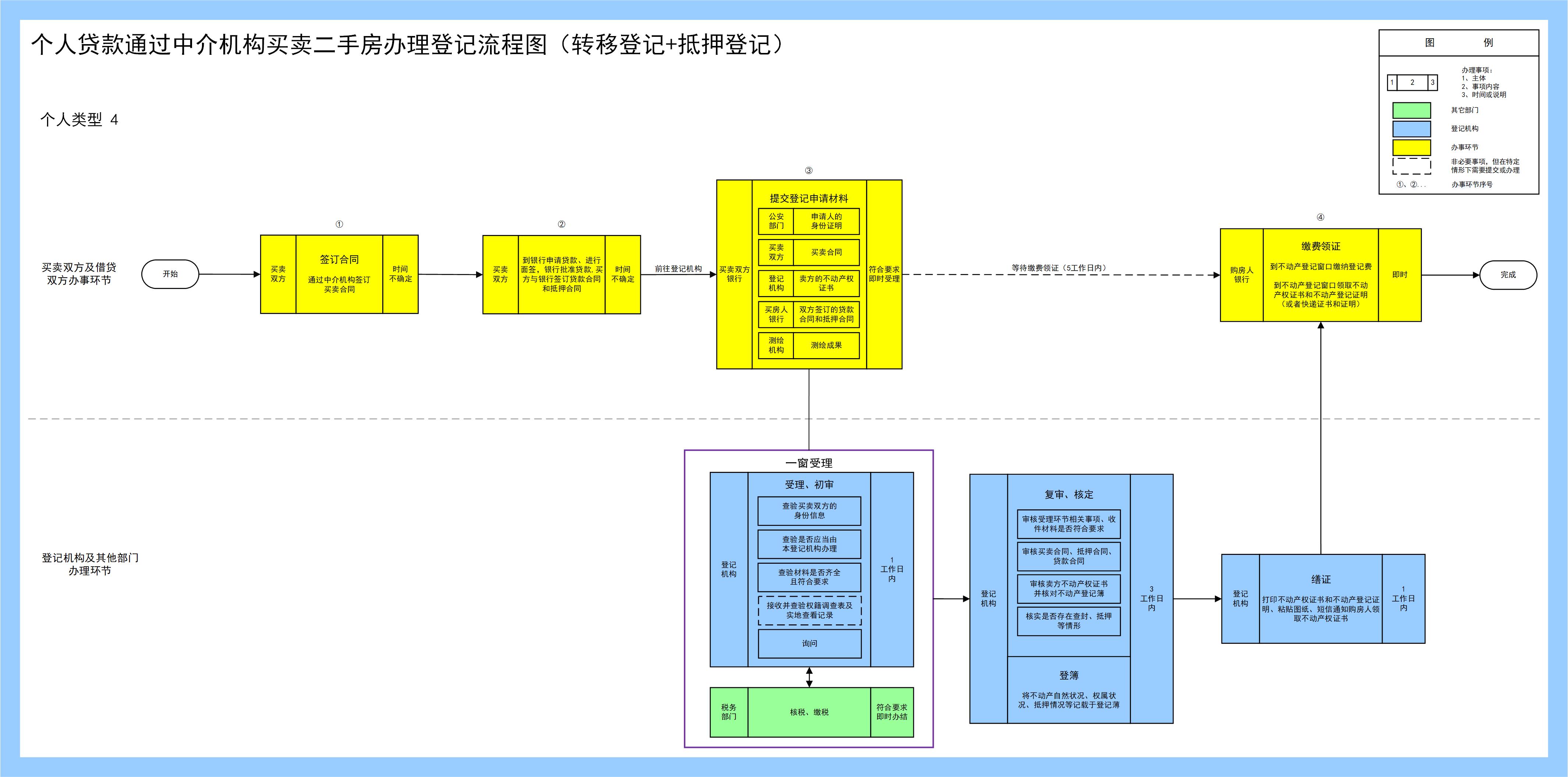 個(gè)人貸款通過(guò)中介機(jī)構(gòu)買賣二手房辦理登記流程圖(轉(zhuǎn)移登記+抵押登記).jpg