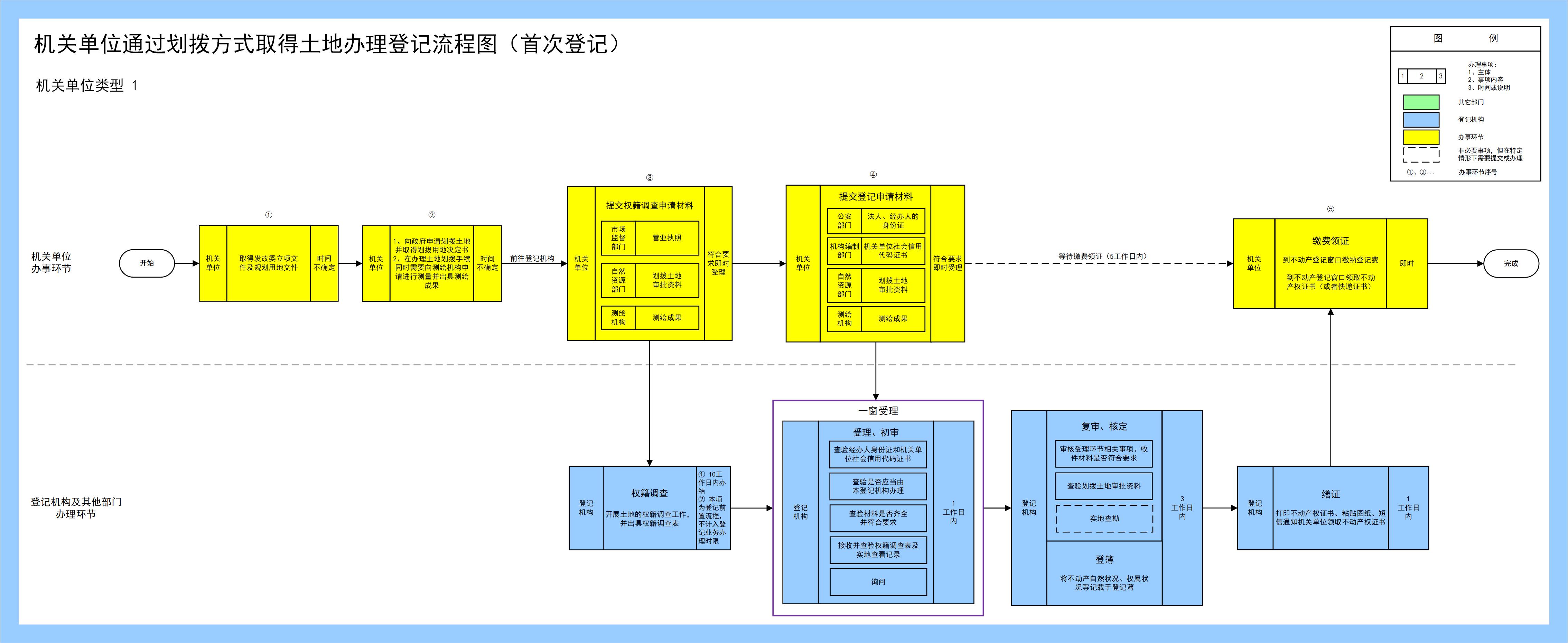 機(jī)關(guān)單位通過(guò)劃撥方式取得土地辦理登記流程圖(首次登記).jpg