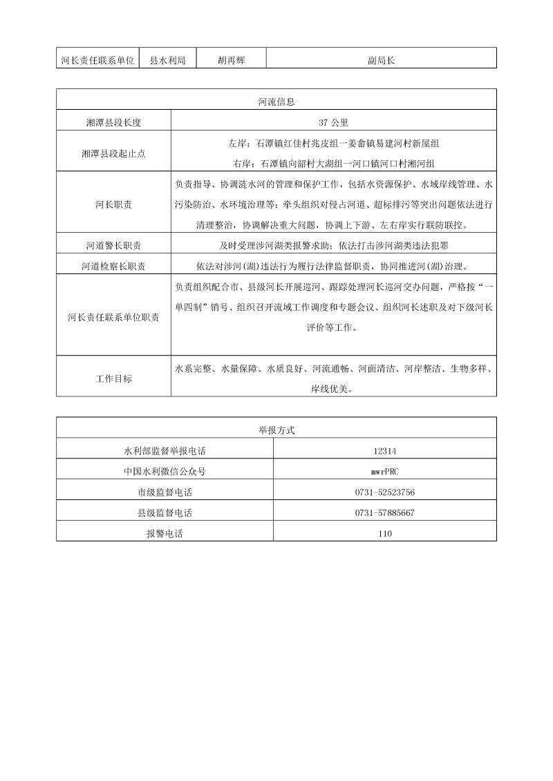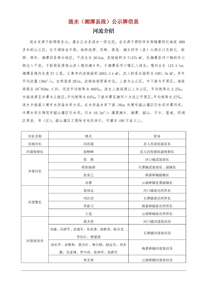 湘潭縣水利局發布漣水(湘潭縣段)公示牌信息