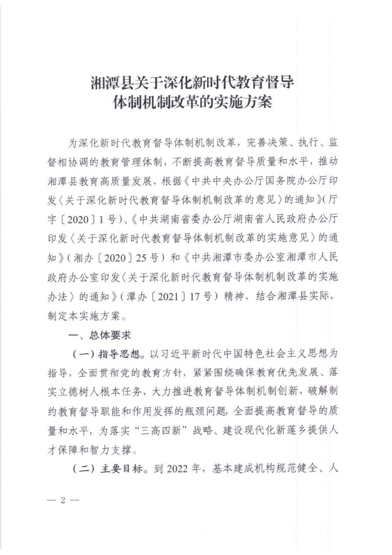 湘潭縣關于深化新時代教育督導體制機制改革的實施方案
