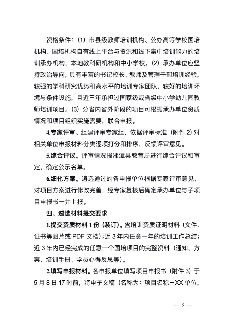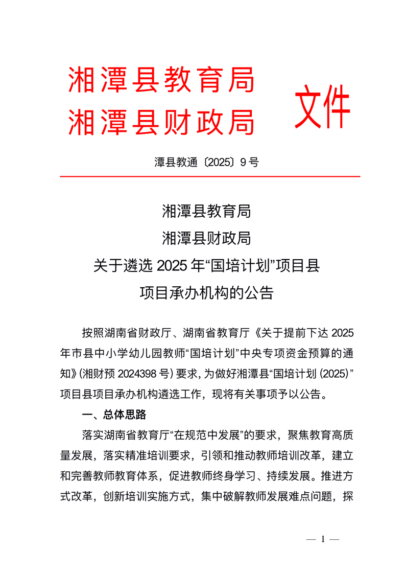 湘潭縣教育局 湘潭縣財政局 關(guān)于遴選2025年“國培計劃”項目縣項目承辦機構(gòu)的公告